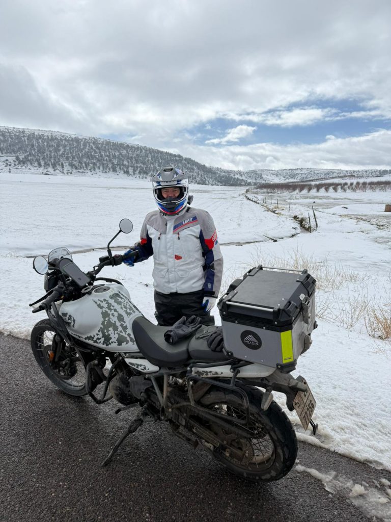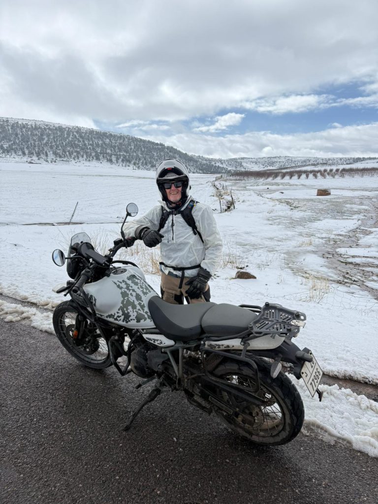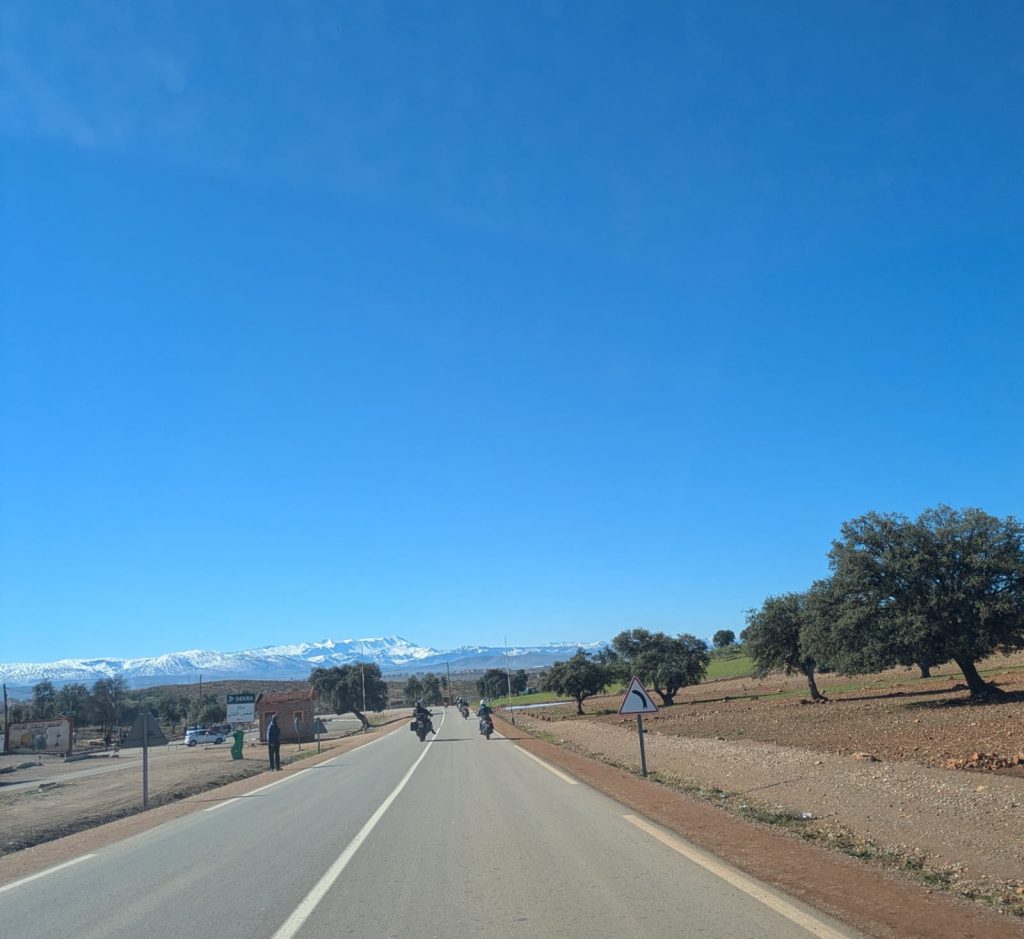 One day we were cruising under blazing desert sun, the next we were winding into the Atlas Mountains where fresh snow dusted the peaks and the temperature dropped fast enough to freeze our visors.
